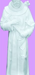 • Design: St. Francis holding a crucifix and rosary, in traditional Franciscan attire